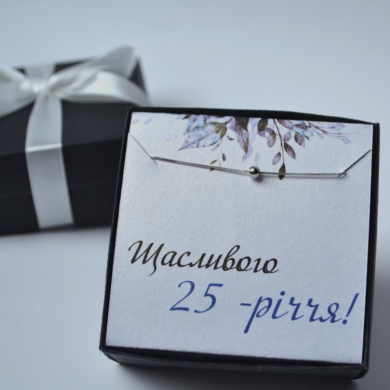 Інколи важко підібрати оригінальний подарунок на день народження, а особливо якщо це ювілей або важлива дата. Мінімалістичне кольє із кулькою та листівка із побажанням вирішать цю проблему. Оригінальний та незвичний подарунок точно запам'ятається. Кольє виготовлене із ювелірного сплаву та покрите родієм. Не чорніє, зберігає вигляд та не залишає сліди. Гарантія 3 роки. В комплекті подарункове упакування та інструкція по догляду за прикрасою. Такий подарунок буде єдиний та унікальний, адже це ручна робота. Відправлення здійснюється кожен день транспортною компанією Нова пошта. Також, за бажанням, Ви можете відправити подарунок анонімно. Доступна оплата при отриманні та на карту. Виконуємо персоналізований текст на листівці. Для цього надішліть Ваш текст і ми підготуємо дизайн майбутньої листівки. Термін виконання індивідуального замовлення 1-2 дні. Текст розміщується на листівці 8*8 см. Вартість персоналізованого дизайну +50 грн до суми замовлення.