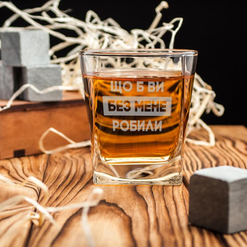 Стакан для виски "що б ви без мене робили", українська, крафтова коробка pro_370