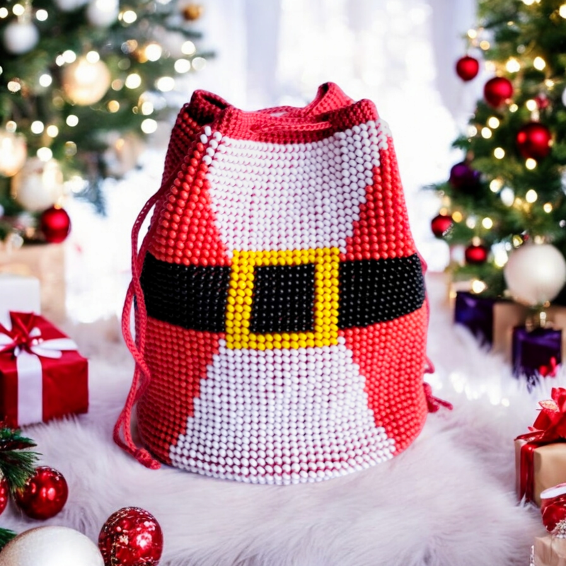 Торбинка для подарунків у вигляді кошужка Санти 🎅 Незвично, атмосферно, святково! В такому мішечку ваш подарунок точно справить враження і запам'ятається надовго! А ще стане гарним доповненням до різдвяного декору 🌲 Чеський бісер, шнурівка. 10х8 см