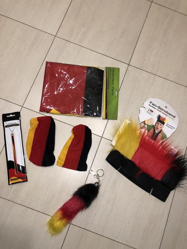 Прапор Німеччини 150; повʼязка перука фаната збірної Німеччини - 100; чохли на бокові дзеркала авто - 80; брелок хвіст - 100;