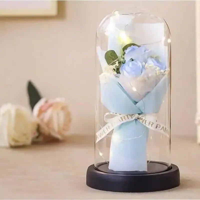 Букет из мыльных роз в колбе с подсветкой, 22 см