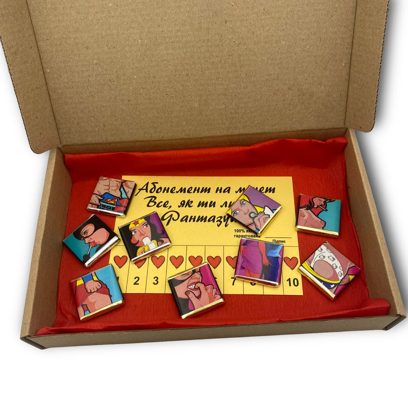 Подаруйте своєму коханому щось оригінальне та справді незабутнє! Набір "Тому, хто дорогий моєму серцю..." — це водночас жартівливий та інтригуючий подарунок, який створить особливу атмосферу у ваших стосунках. Що ж всередині?.. ⬇️ 🎁 Абонемент на 10 моментів насолоди, які ваш чоловік точно не забуде! 🍫 10 шматочків ніжного бельгійського шоколаду з грайливими ілюстраціями, що додадуть подарунку пікантності. 🎀 Упаковано в стильну крафтову коробку з червоним декором і ніжною стрічкою. Ідеальний подарунок 🤩 ✔️ На будь-яке свято: День народження, річниця, День закоханих чи Новий рік. ✔️ Просто так, щоб порадувати та здивувати його без приводу. 🎉 Чому варто обрати саме цей подарунок? Бо це чудовий спосіб здивувати свого чоловіка, додати у стосунки нотку гумору, романтики та пристрасті! Подаруйте емоції, які ви обидва запам’ятаєте надовго... 🥰 💰 Ціна: символічна, а задоволення — гарантоване для вас обох! 🌟 Замовляйте прямо зараз, адже любов — це про щирість, радість і грайливість! kpb.0663
