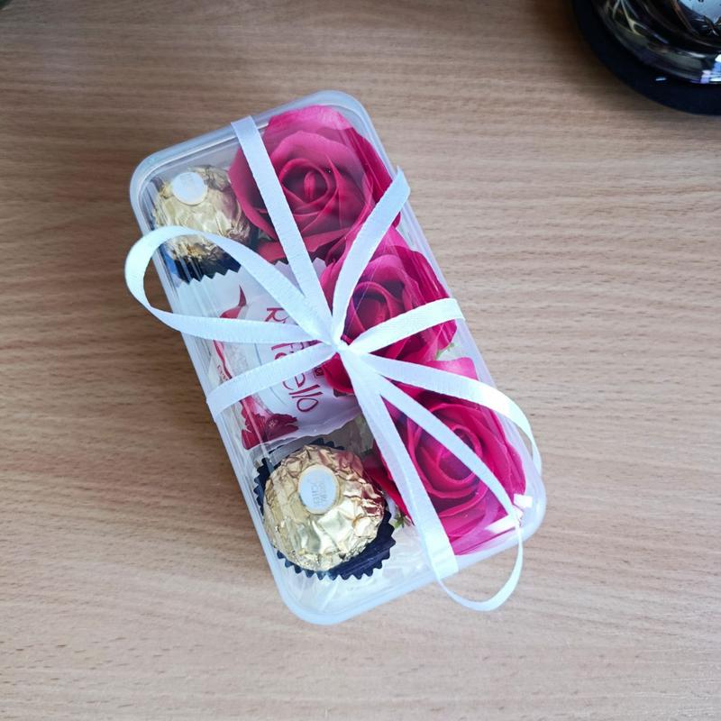 Скажіть «Так» чарівності та ніжності з нашими подарунковими наборами, наповненими солодкими задоволеннями, які точно підкорять серця ваших близьких! День закоханих, 8 Березня, День народження, Новий рік, і багато інших особливих моментів у житті! До складу входить: - Троянди 3 шт - Цукерки Raffaello 1 шт - Цукерки Ferrero 2 шт - Наповнювач стружка Розмір: 14,5х7,5х7 см Наші подарунки - найкращий спосіб висловити свої почуття