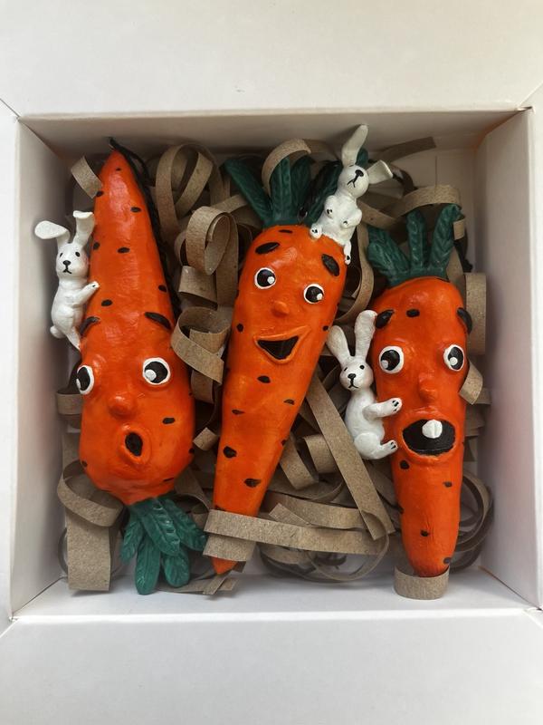 Набор декоративных игрушек для дома и интерьера ручная работа кролики на моркови handmade