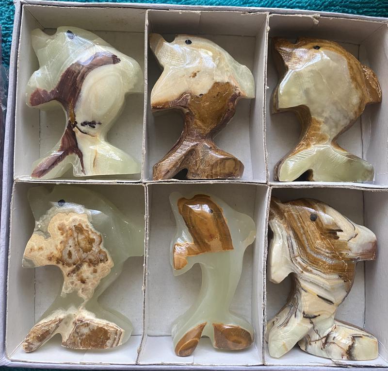 Дельфіни з натурального цільного камінчика онікс. Висота 5,5 см