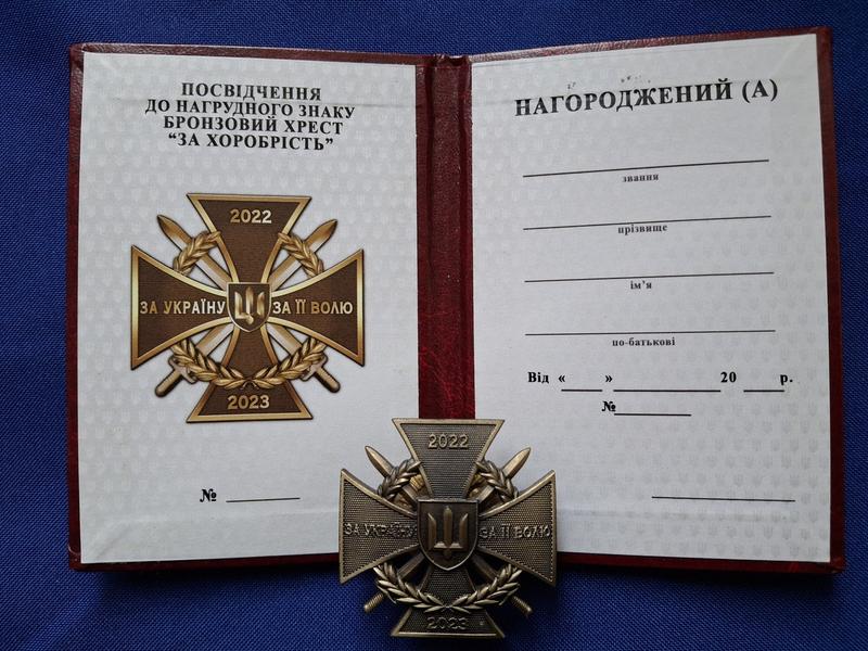 Нагрудный знак бронзовый крест за храбрость 2022-2023