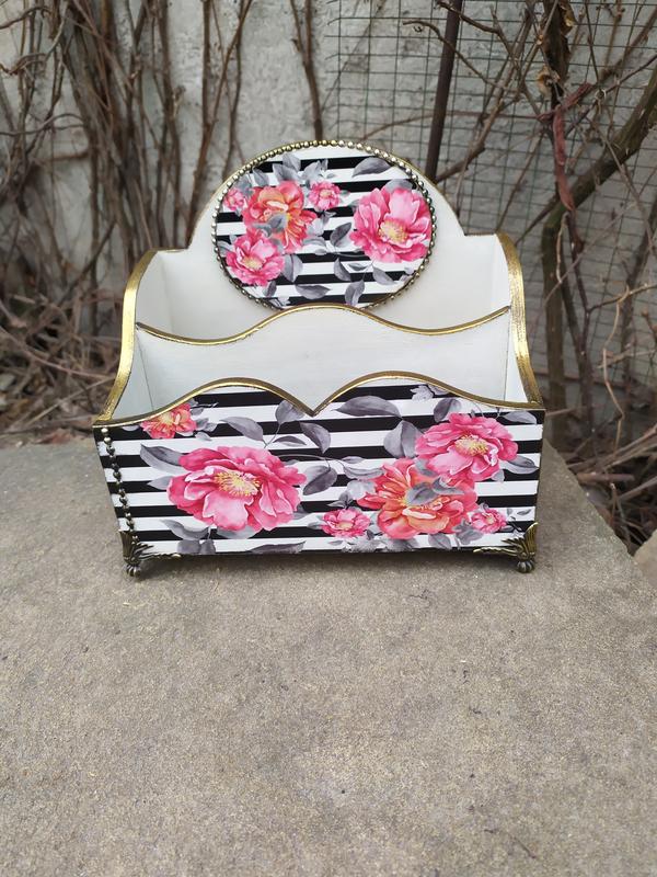 Короб декоративний на 2 відділення. Матеріал - дерево, Декорований в техниці декупаж. Розмір 20х12х18,5 (висота). РОблю під замовлення в вашому кольорі і малюнку.