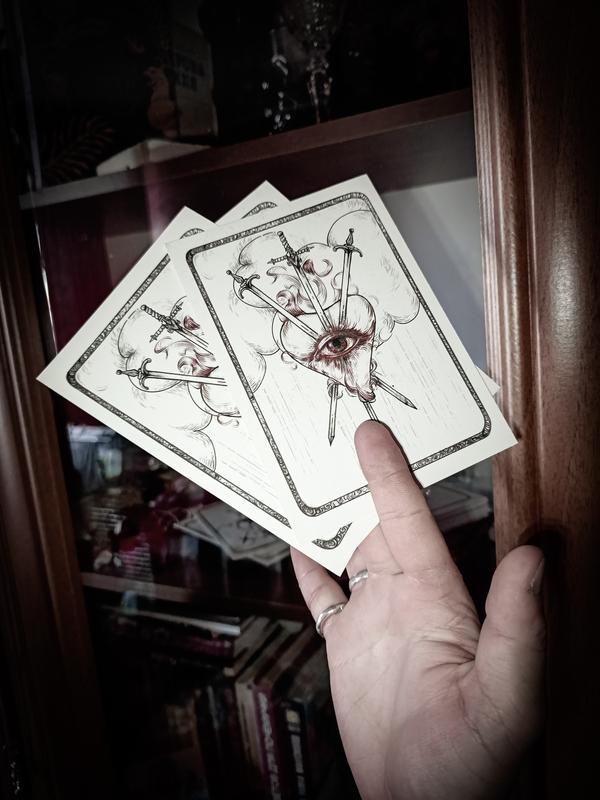 Представляю вашій увазі круті листівки у вигляді карти таро "Трійка Мечів". Матове покриття, розмір а6. Ціна за набір з 10 шт. За додатковими фотографіями, замірами та запитаннями прошу звертатись в приватні повідомлення.