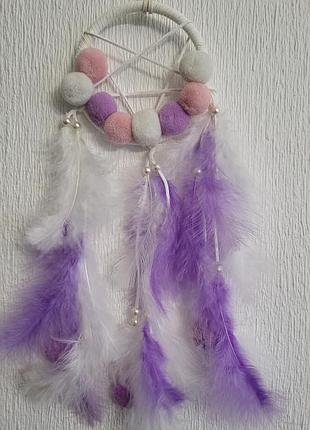 Ловець снів бузковий 1 круг із пір'ям