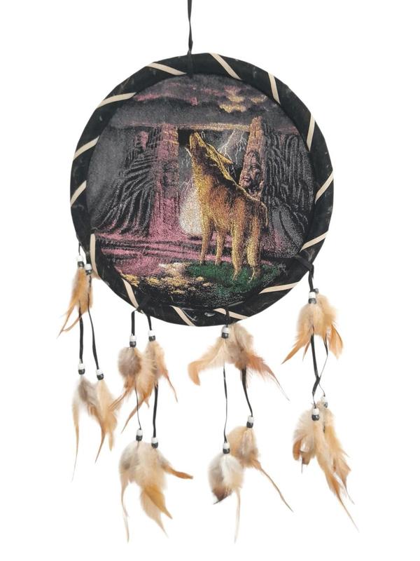 Ловець снів Вовк Чорний Круг із пір'ями Діаметр: 25 см