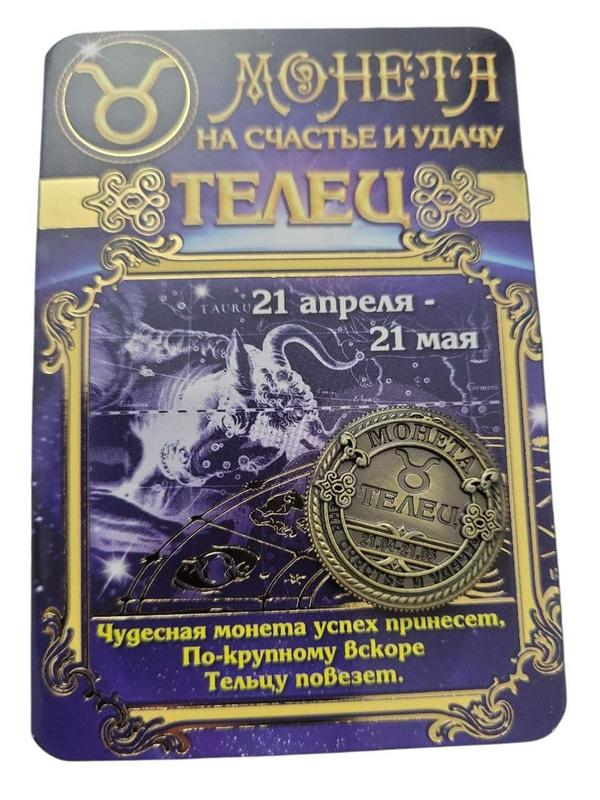 Сувенир монета на счастье и удачу знак зодиака телец 2,5 см