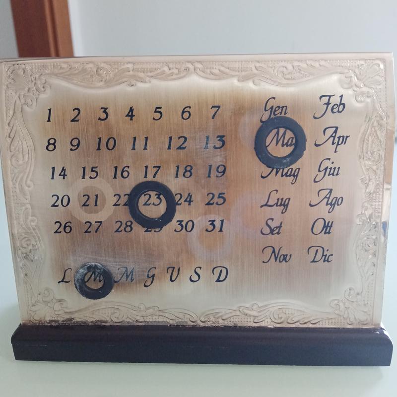 Срібний настільний календар з Італії. Підставка дерев"яна. Розмір 16см *6см, висота 12см