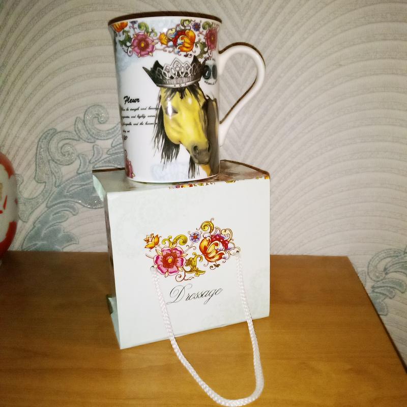 Следующий 2026 год - год Коня. Чашка украшена рисунками - символом 2026 г. Хорошая упаковка на магнитной застежке. Высота чашки 10 см, диаметр 7.5 см. Без дефектов.