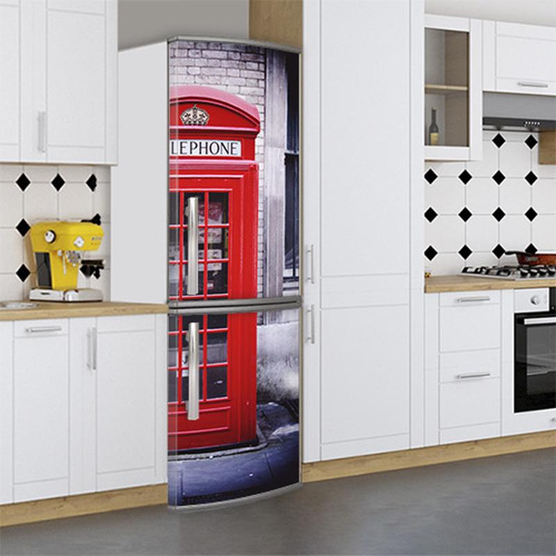 Самофіксуюча наклейка на холодильник магнітна з телефонною будкою 180 х 60 см, лицева час...