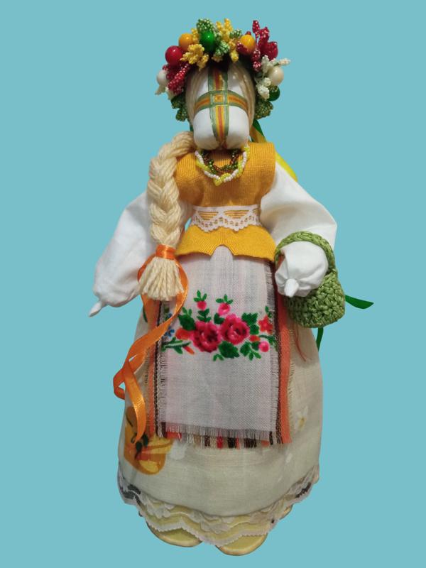 Лялька мотанка. Інтер'єрна лялька мотанка. висота до 25 см. Основа - качан від кукурудзи. Виготовлення можливе по обраних кольорах, головних уборах. Ціна від 450 грн. На дерев'яній підставці