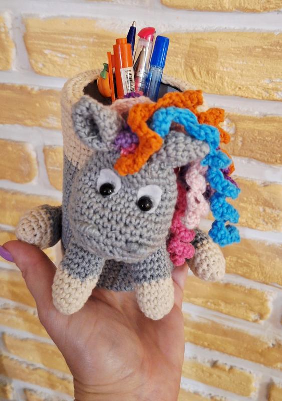 Зв'язана гачком канцелярська підставка у вигляді лошадки привабить дитину