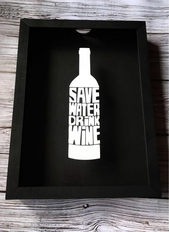 Скарбничка для винних корків — ідеальне доповнення для інтер'єру кухні або вітальні. Розмір: 36x27х5 см. Можливий інший малюнок і колір. Універсальний подарунок на будь-яке свято. Матеріал: фанера, оргскло або скло, вінілова наклейка.