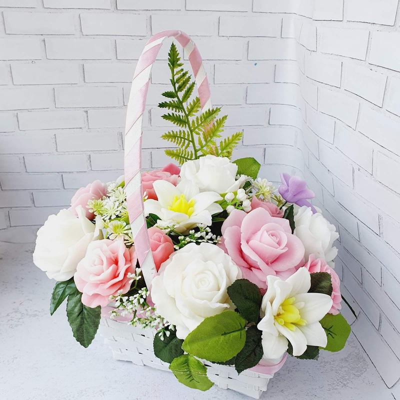 Цветочная композиция в корзине , мыло ручной работы " нежная корзина с розами "