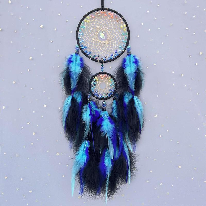 Ловець снів Матеріал -- залізний обруч + перо Колір синій Розмір -- 13 см*60 см Виробництво -- Китай Ловець снів - індійський амулет, що захищає того, хто спить, від злих духів і хвороб. За традиціями,погані сни заплутуються в павутинні , а хороші прослизають крізь отвір усередині.