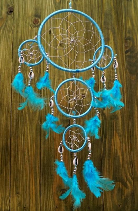 Ловець снів 5 кілець із каурі (3 кольори) блакитний
