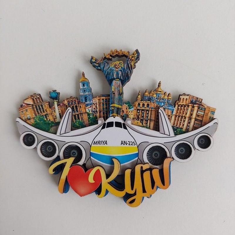 Магніт сувенірний майдан незалежності та літак "мрія" магніт. дерев'яна слойка 104*82 мм (...