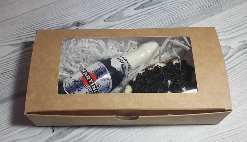 Подарунковий набір сувенірного мила мартіні і бутерброд з чорною ікрою в коробочці мило ру...
