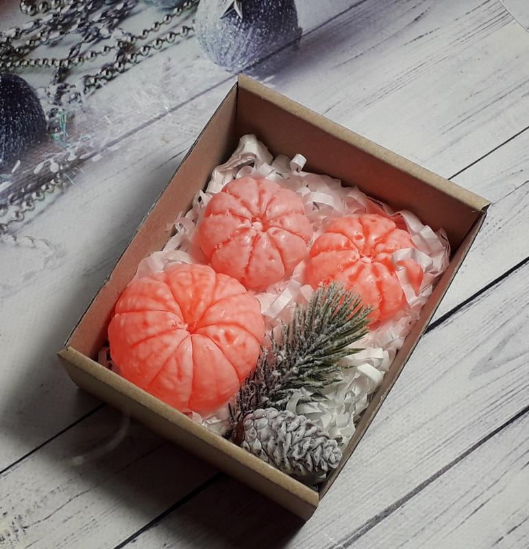 Подарочный набор сувенирного мыла шишка мини и три мандаринки чищенный мыло ручной работы