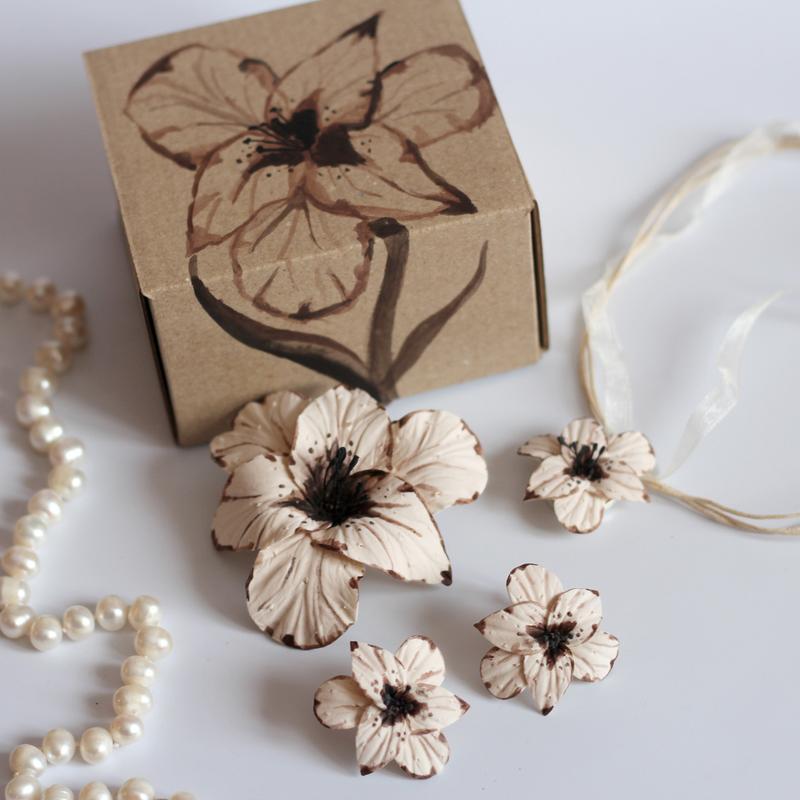 Вітаємо у світі вишуканості та елегантності! Хочете зробити подарунок, який точно зачарує жінку? Ви на правильному шляху! Наші унікальні прикраси з квітами з полімерної глини - це саме те, що вона оцінить і запам'ятає надовго. ✨ Наші квіткові композиції створюють атмосферу магії та загадковості, яка додасть шарму та жіночності до будь-якого образу. Кожна квіточка зліплена з полімерної глини + акриловий розпис. Квіти дуже легкі, майже невагомі. Протипоказання: вплив з водою. Можливий браслет