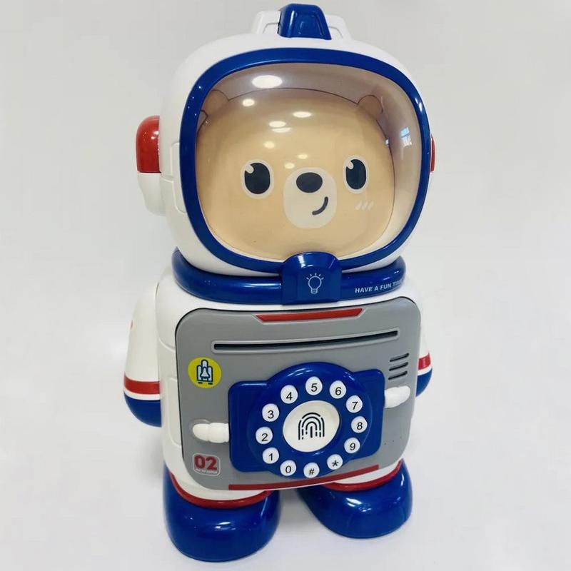Дитяча скарбничка сейф "Мішка-Мішка" щоразу запитуватиме пароль і імітуватиме сканування відбитка пальчика, завдяки чому малюки будуть впевнені в надійності зберігання кишенькових засобів. Особливості: - яскрава підсвітка шолома; - звукові ефекти; - сенсорна кнопка вмикання/вимикання підсвітки; - оригінальний дизайн у формі астронавта; - працює від 3 батарейок "АА" (не додаються); - імітація сканування відбитка пальця; - відсік для батарейок розташований у рюкзаку астронавта; - у комплекті представлені ігрові банкноти; - стандартний код для розкриття сейфа: 0000; — після трьох разів неправильного введення коду іграшка вмикає сирену. Розмір скарбниці 17 * 14 * 24.5 см. Розмір коробки 24 * 15.5 * 29 см.