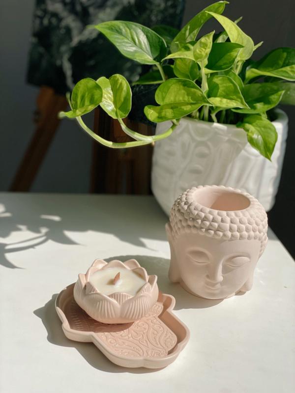 Набір будда з ароматичною соєвою свічкою в кашпо ручної роботи verbena