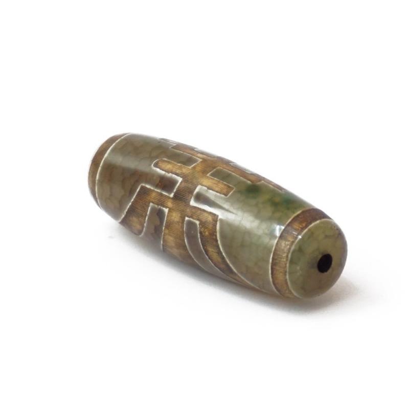 Бусина Дзи зелёная Большой Человек Размер: 4х1.4х1.4 см. Материал: Каменная крошка Бусина Дзи Большой человек (Дзи Аристократ) -- это великолепный талисман для людей, влюблённых в своё дело, умеющих и любящих работать, готовых выложиться полностью в своём деле. Она хороша и для деятелей умственного труда. Этот тибетский талисман дает: Ясность мысли и улучшает память. Помогает в работе умственных механизмов. Способствует чёткости и логичности выводов. Улучшает психическую устойчивость человека при работе в неблагоприятных условиях. Поддерживает эмоциональное и душевное равновесие. На бусине Дзи большой человек изображен рисунок, напоминающего человека с головой на обоих концах. Название этой бусина звучит как «Да Рен», что в переводе с мандаринского языка означает «Да» -- большой и «Рен» -- человек. Она обозначает величие, важность, большой чин. Поэтому её ещё называют Дзи Аристократ. Эта бусина Дзи помогает в очищении кармы, повышает интеллект, целеустремленность и обеспечивает безопасность. Бусина Дзи большой человек дает ощущение цельности и защищенности. Особенно это проявляется при ментальной деятельности человека. Все мыслительные процессы улучшаются благодаря этой бусине. Кроме своей функции оказывать благоприятное воздействие на мыслительную деятельность человека, бусина Дзи большой человек помогает обрести важных людей в вашем окружении. Это могут быть наставники, которые помогут вам в важных жизненных вопросах. Это могут быть какие-то другие люди, которые помогут вам добиться ваших целей или поддержать вас в различных жизненных ситуациях. Помощь таких людей может быть выражена не обязательно в виде денег или какой- то услуги, которая приведет к вашему благосостоянию и более высокому статусу в обществе. Это могут быть своевременные и ценные советы, поддержка или просто одобрение. Такие «возникающие» с помощью этой Дзи Аристократ люди могут очень помочь вам. Внимательно смотрите, чтобы не отмахнуться от таких ценных помощников, которые будут возникать у вас в течении жизни.