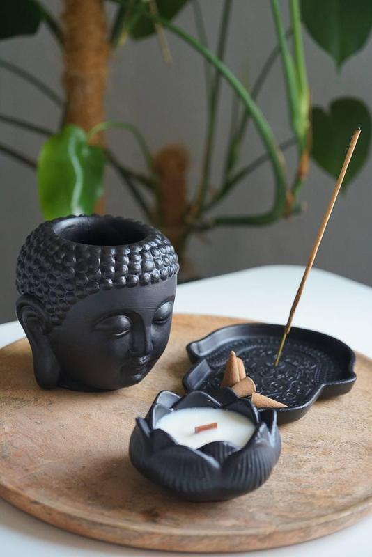 Набір будда з ароматичною соєвою свічкою в кашпо ручної роботи tropical forest