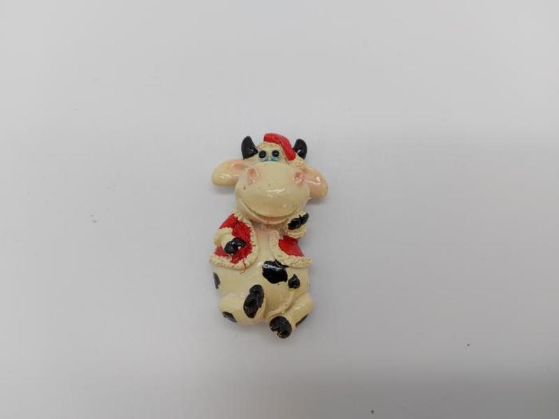 Магніт на холодильник новорічний "Бичок-Дід Мороз" символ року 5 cm. Сувенірні магніти і рекламні. Доставка в усі регіони України.