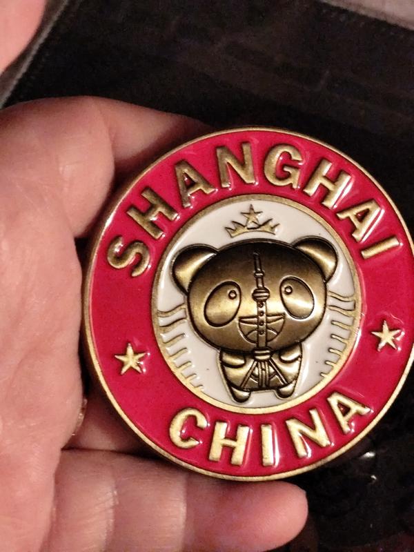 Круглий магніт сувенір металевий китай шанхай ведмедик панда