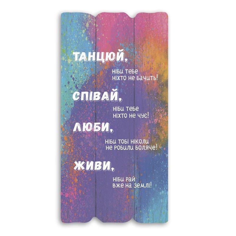 Декоративна дерев'яна табличка 30х15 танцюй, співай, люби,живи хрт10087у тур-колекшн