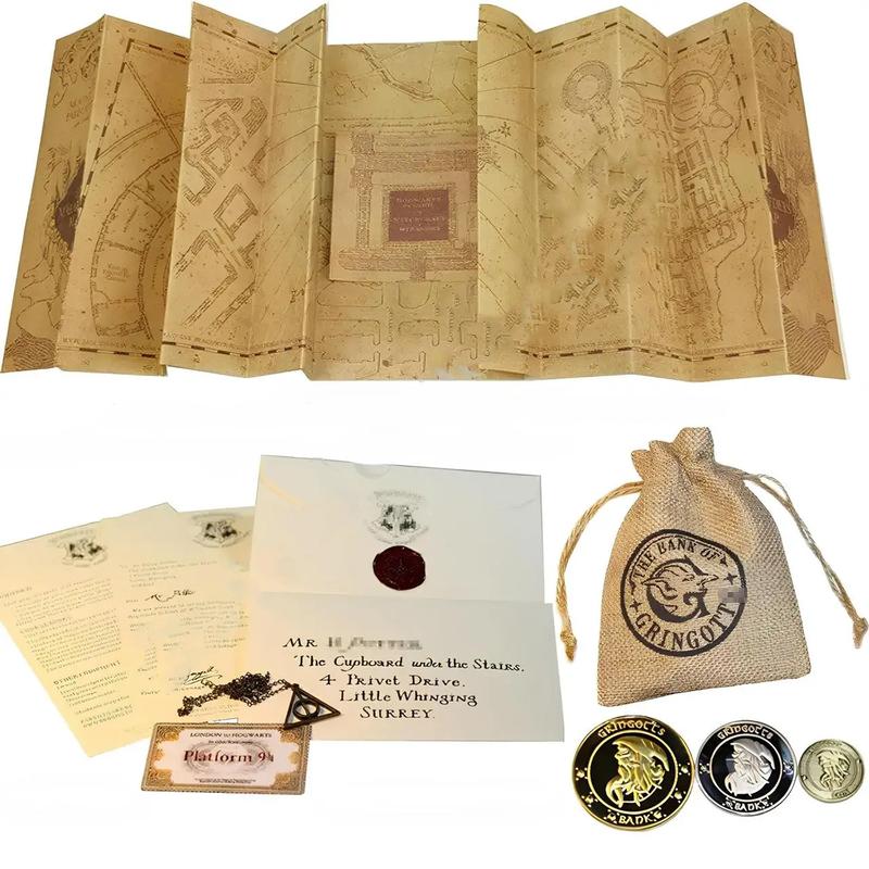 Карта мародерів, лист про прийом у гоґвортс, кулон дари смерті, три монети в мішечку, квит...