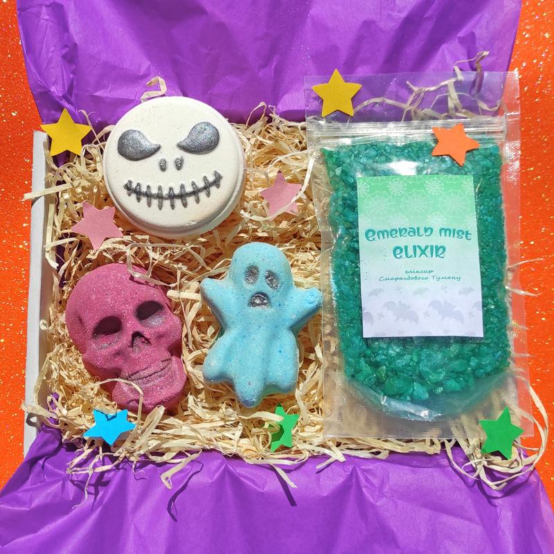 Оригінальний подарунок набір бомбочок для ванни "мозковий жах" на гелловін для дівчини, хл...