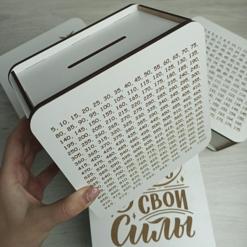 Популярна скарбничка-копілка з цифрами (можливо ви бачили її у тік тоці). Як вона працює? Все дуже просто. На скарбничці є ряд цифр. Коли в скарбничку кладуться кошти - відповідне число закреслюється (або декілька чисел, сума яких = вкинутим коштам). Коли всі цифри будуть закреслені - ціль досягнута. Скарбничка розбивається і з неї дістається сума, яка збиралася. -Різноманітні дизайни -Будь-який напис з одного боку скарбнички -Різні суми для збору (у тому числі популярна копілка 365 днів для збору 66 795) -Немає вільного доступу до коштів -Валюту для збору ви обираєте самі Такій копілці буде радий і малий і дорослий. З її допомогою можна зібрати на будь-яку ціль - телефон, велосипед, самокат, або навіть авто/квартира)) Відправимо новою поштою, укрпоштою, або джастін. В Житомирі - самовивіз (можна з Глобалу)