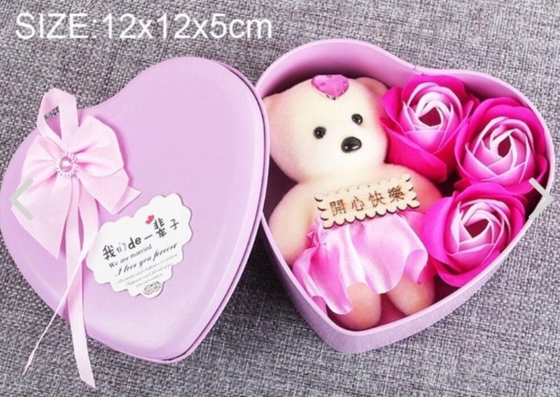 ✅ Коробка в форме сердца Красная с мыльным цветком с 3 розами и 1 мишкой ✅Подарочный набор в форме сердца с мылом в виде роз и мишкой - очень оригинальный подарок для женщин по любому случаю. Вы непременно сможете удивить своих близких таким простым, но оригинальным подарком, который будет радовать их каждый день. Мыльный букет из розочек создает впечатление, что перед Вами будет букет их самых настоящий цветов. Розы сделаны из мыла, что делает их похожими на настоящие. Подходит для всех особых случаев: День Святого Валентина, День матери, свадьба, юбилей, день рождения и т. д. При минимальном уходе такие цветы будет радовать не несколько дней, а несколько лет. Просто поставьте их подальше от прямых солнечных лучей, сквозняков, радиатора отопления. Такие розы в основном используются как декоративное украшение интерьера, но если они утратят свою ценность – можно разобрать их на лепестки и принять с ними ванну. ✅ Преимущества: Оригинальный подарок; Практичный; Украшение для дома или офиса. ✅ Характеристики: Тип: набор мыла; Применение: бытовое; Упаковка: металлическая коробка; Тип: мыло ручной работы; Размер: 12х12х5 см; Материал лепестков: мыло. ✅ Комплектація: Подарунковий набір мила з троянд з мишком. Кольори морський, червоний, рожевий!! 💸 *Ціна за штуку 145 грн.