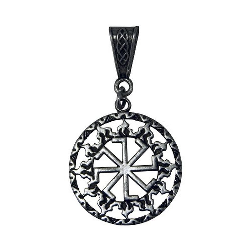 Колядник в солнечном круге серебрение / амулет кулон 5x2 см