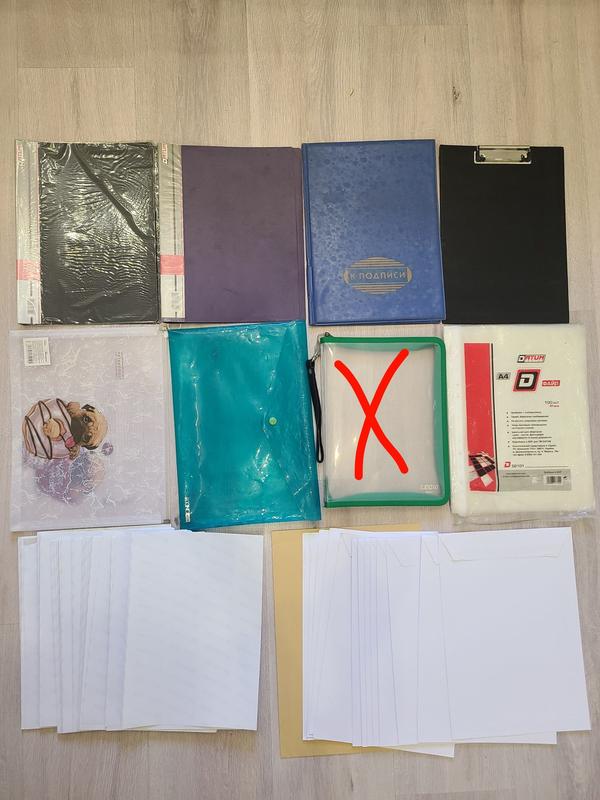 Новая папка черная для файлов 20 грн, Фиолетовая папка 15 грн. Синяя папка 5 гр. Планшет А4 с прижимом, пластик, черный 20 грн. Новая папка для документов 15 грн, голубая 5 грн, б/в папка на молнии 10 грн, файлы 50 штук 35 грн. Бумага А4 самоклеющаяся 2 грн. 1 аркуш. (75 шт.). Большой конверт электронный самоклеющийся с силиконовой лентой по 2 грн. 1 шт. (15 штук).