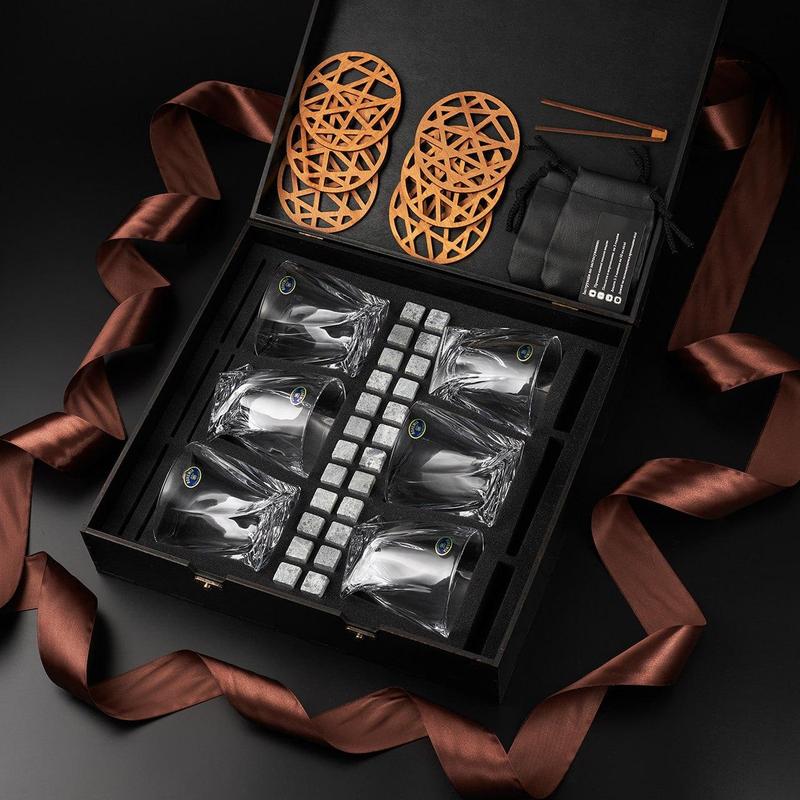 Подарочный набор 6 стаканов для виски и стеатитовых камней для охлаждения виски + 6шт бока...