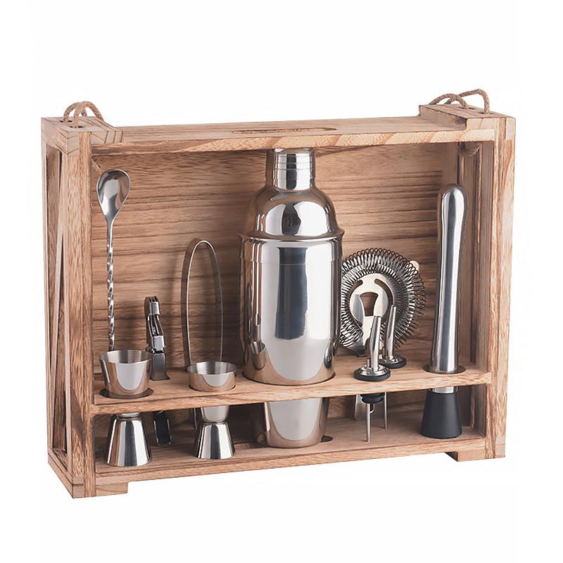 Набір для бару Creation KK11-16 Особливості: Містить 11 предметів, виготовлених із якісної неіржавкої сталі з дзеркальним поліруванням, що надає їм елегантного вигляду та забезпечує довговічність. Набір стане чудовим вибором як для професійних барменів, так і для ентузіастів, які бажають підняти коктейльні навички на новий рівень. Він містить усе необхідне для приготування класичних і авторських коктейлів. Основним елементом є шейкер, що дає змогу ефективно змішувати інгредієнти, створюючи однорідні та смачні напої. Мадлер допоможе легко розминати фрукти, трави та спеції, розкриваючи їхні аромати та додаючи свіжість кожному коктейлю. Спіральна ложка ідеально підходить для шару та ретельного змішування інгредієнтів. Джигер із двома мірками забезпечує точність вимірювання, що є ключовим для дотримання рецептури. Стрейнер забезпечує чистоту напою, відокремлюючи великі частки та лід. Два гейзери гарантують рівномірний і точний налив алкоголю, що важливо для створення ідеальних коктейлів. Щипці допоможуть акуратно додавати лід або інші великі інгредієнти, а відкривачка знадобиться для відкривання пляшок. Набір для бара Creation KK11-16 — функціональний комплект, створений для тих, хто прагне майстерності у створенні коктейлів. Підставка з дерева не тільки зручна, але й стильна, даючи змогу зберігати всі предмети впорядкованими та під рукою. Вона додає набору естетичної завершеності, роблячи його чудовим доповненням до будь-якого бару або кухні. Він підходить як для домашнього використання, так і професійного бару, стаючи незамінним інструментом у створенні незабутніх напоїв.
