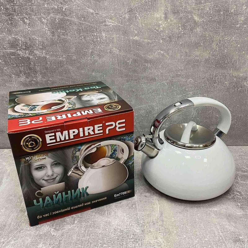 Чайник из нержавеющей стали со свистком белый 3 л empire em-7709