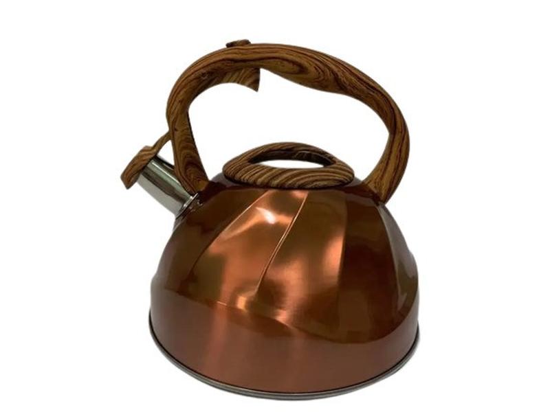 Чайник зі свистком Empire EM-7713 Чайник Empire EM-7713 виготовлений з нержавіючої сталі, що сприяє швидкому та рівномірному нагріванню та розподілу тепла. Завдяки свистку Ви точно знатимете про момент закипання води. Характеристики: - Тип: чайник зі свистком - Матеріал: нержавіюча сталь - Матеріал ручки: бакеліт - Об'єм: 3 л - Форма: кругла - Колір: бронзовий - Виробник: Empire