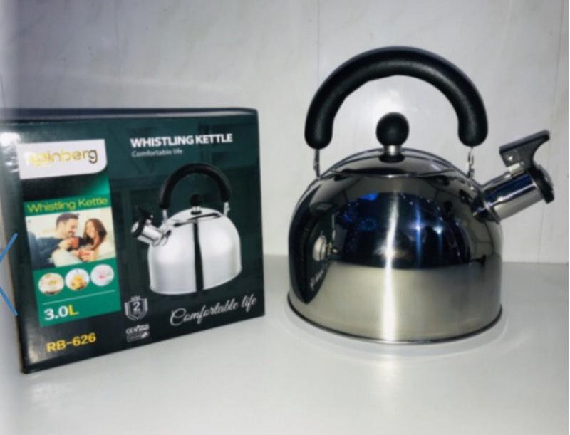 Чайник з північком Rainberg сталевий 3л (RB-626) - це відмінний кухонний пристрій, який не лише допоможе вам швидко закип'ятити воду для заварювання чаю або кави, але й стане стильним доповненням до вашого інтер'єру. Виготовлений з високоякісної нержавіючої сталі, цей чайник має міцну конструкцію і довгий термін служби. Об'єм чайника складає 3 літри, що дозволяє вам приготувати достатню кількість гарячої води для великої компанії або сім'ї. Завдяки зручному розміру і ергономічній формі, чайник легко поміщається на будь-яку поверхню і зручно тримати в руці. Особливістю цього чайника є наявність півника, який повідомить вас про те, що вода закипіла. Це дуже зручно, оскільки ви можете займатися іншими справами, не турбуючись про те, що вода википить і чайник перегріється. Півник також дозволяє заощадити енергію і запобігти можливим аварійним ситуаціям. Кришка чайника надійно закривається, що допомагає зберегти тепло всередині і швидше довести воду до кипіння. Зручна ручка не нагрівається в процесі роботи, що робить використання чайника безпечним і комфортним. Крім того, стильний дизайн і блискуча поверхня роблять цей чайник відмінним подарунком на будь- який випадок. Чайник з північком Rainberg сталевий 3л (RB-626) - це надійний помічник на кухні, який полегшить вам життя і додасть затишку і комфорту у вашому домі. Придбайте цей відмінний чайник вже сьогодні і насолоджуйтеся смачним чаєм або кавою у будь-який час дня!