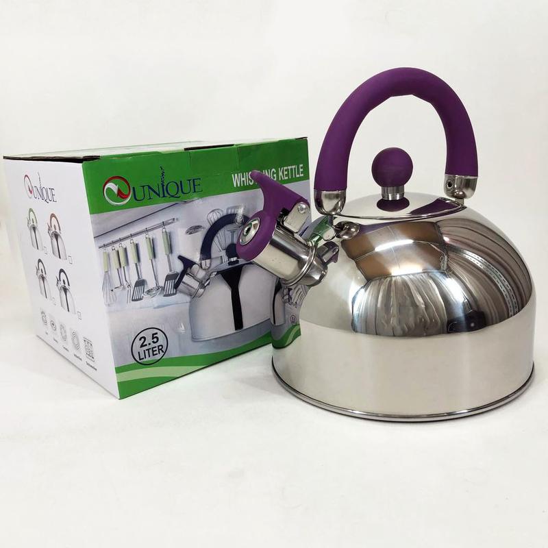 Чайник unique із свистком un-5302 2.5 л, гарний чайник для газової плити. колір: фіолетови...