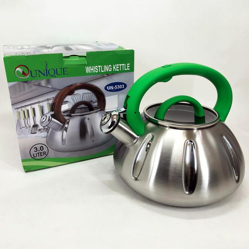 Чайник со свистком unique un-5303 кухонный на 3 литра, чайник нержавейка со свистком. цвет...