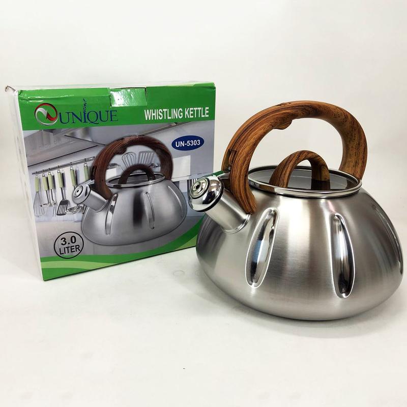 Чайник із свистком unique un-5303 кухонний на 3 літри, чайник для газової плитки. колір: к...