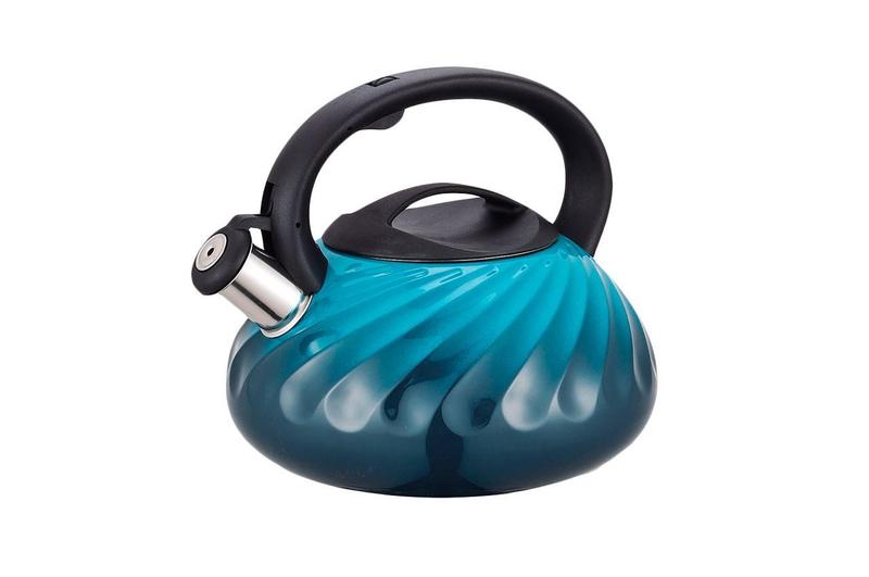 Чайник Maestro 3 л, виготовлений із високоякісної неіржавкої сталі з комбінованим поліруванням у блакитному кольорі. Сталеві вироби вирізняються надзвичайною міцністю й довговічністю, мають високі гігієнічні та антикорозійні властивості, а також не вимагають особливого догляду та легко миються. Обладнаний пластиковою ручкою, що не нагрівається. Завдяки насадці- свиствку, з кнопкою для відкривання на ручці, Ви точно знатимете про момент закипання води.